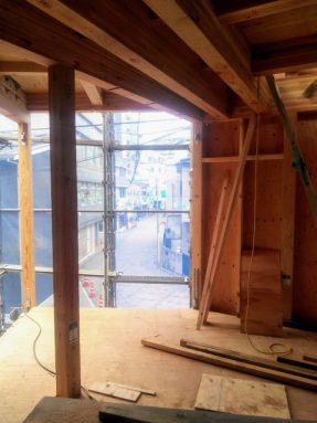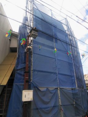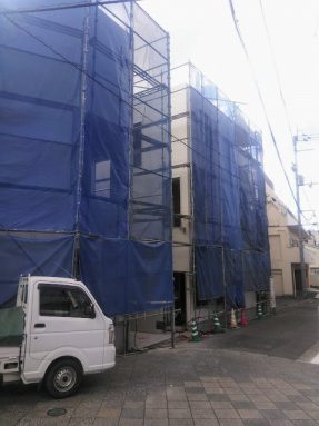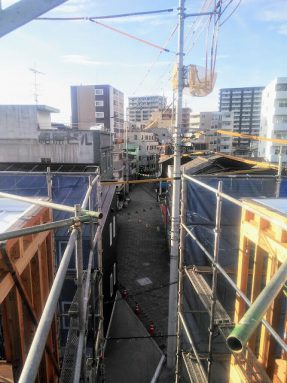 柳井町商店街に建築中の新築アパートメント、お天気にも恵まれ工事は順調です。