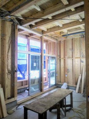 先月までは壁や床や天井といった室内空間を形作る内装工事でしたが、今月から造作や仕上げ作業の内装工事に入りました。
